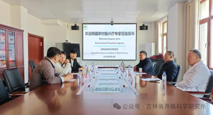 2025年4月14日,韩国农村振兴厅农科院蜜蜂所代表KIM SUBAE、LEE CHANGHOON及吉林省农业科学院宋杭霖研究员一行来我所就蜜蜂遗传资源保护和育种技术等开展专项考察与交流。高洪学副所长、国家蜂产业技术体系岗位专家王志研究员、蜜蜂遗传育种重点实验室李兴安研究员等接待了韩国代表,所内部分专业人员参加了交流。